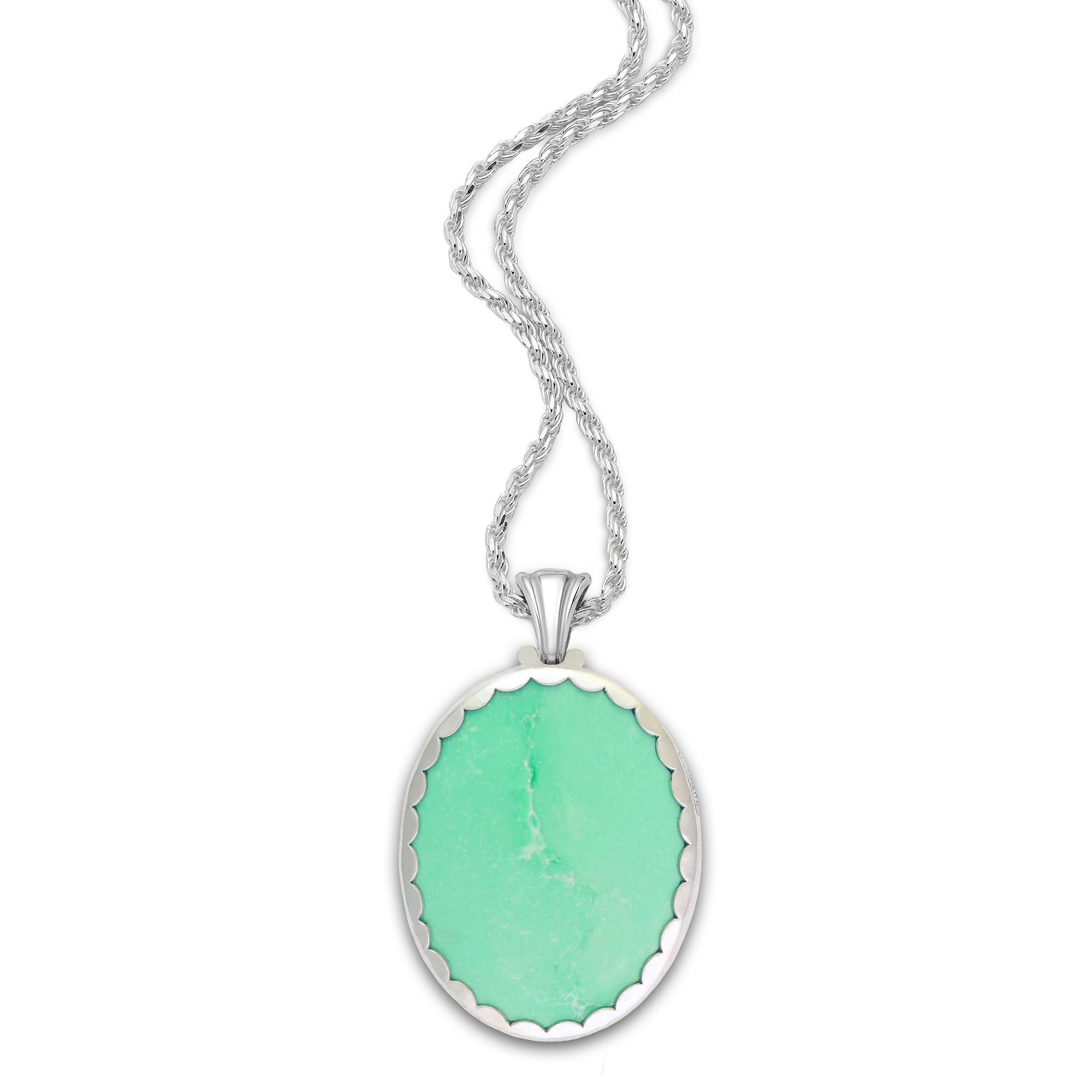 Handmade by artist Kelly Morgen from 18k gold, sterling silver, mint green jasper stone & double rope sterling silver chain.