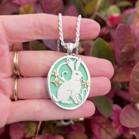 Symbolizing bounty and abundance, the Rabbit Talisman reminds us that the treasures we seek are already within us. The rabbit nestles amidst beautiful golden flowers and art nouveau swirls, ready to call in good fortune and luck.