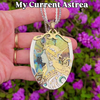 The Astrea Necklace is the masterpiece of Kelly Morgen Jewelry, showcasing the Grecian goddess of the stars. It is said that Astrea will herald in the next Golden Age and bring a second Renaissance to the world, inspiring hope in all dreamers. This star goddess inspires us to our highest potential and reminds us that our soul too can reach the stars.