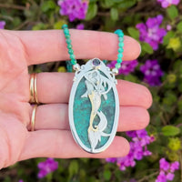 Handmade by artist Kelly Morgen from 18K gold, sterling silver, chrysocolla stone and accent stone, recycled piano key, & chrysocolla beading.